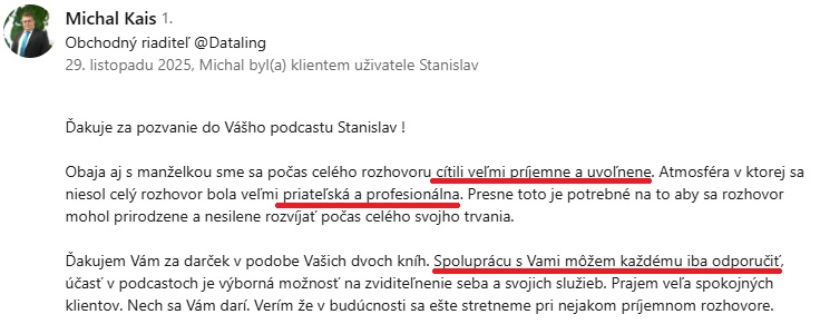 Moji hostia odchádzali s WOW efektom prekvapení, ako prirodzene a ľahko dokázali hovoriť aj o náročných témach.
